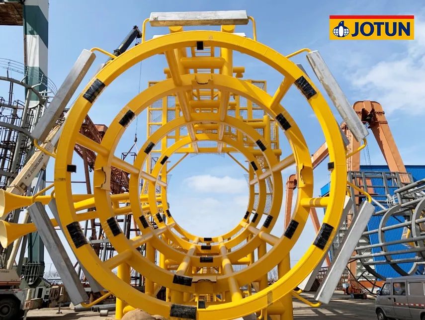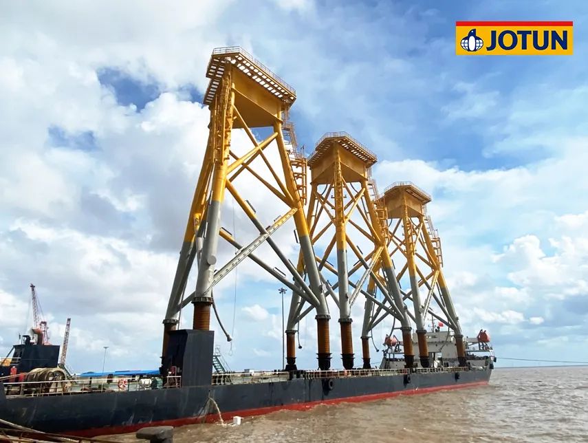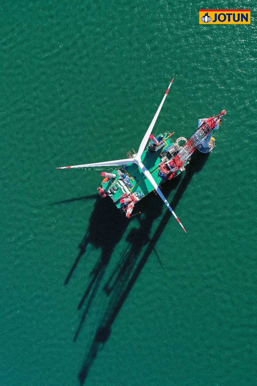項(xiàng)目總投資102.86億元,規(guī)劃容量500兆瓦,水深范圍41-46米,離岸距離55公里。67臺(tái)海上風(fēng)機(jī)矗立在水深40多米的海里,風(fēng)機(jī)基礎(chǔ)結(jié)構(gòu)采用導(dǎo)管架形式,佐敦為整個(gè)項(xiàng)目的導(dǎo)管架涂裝提供了超過700,000升防腐涂料。
